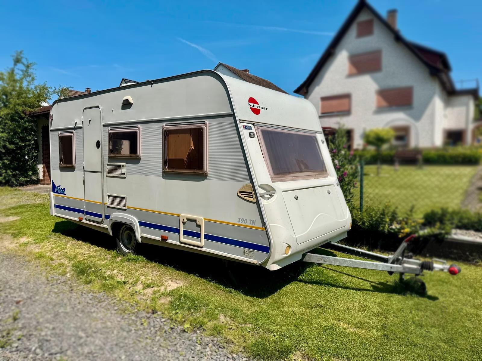 Der BÜRSTNER 390 fun ist ein kleiner Wohnwagen. Mit nur 1000kg zulässigen Gesamtgewicht fährt es sich auch mit wenig Übung recht einfach.